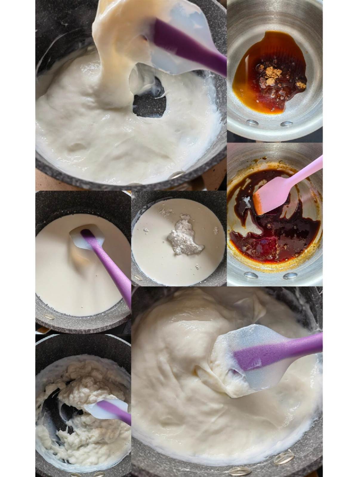 2.黑糖漿:黑糖和水混勻後煮至黏稠後關火;